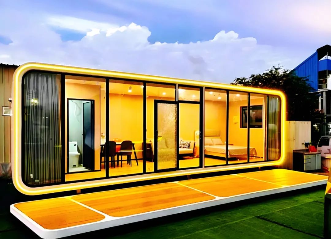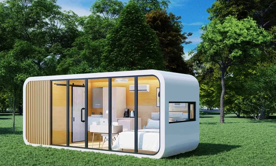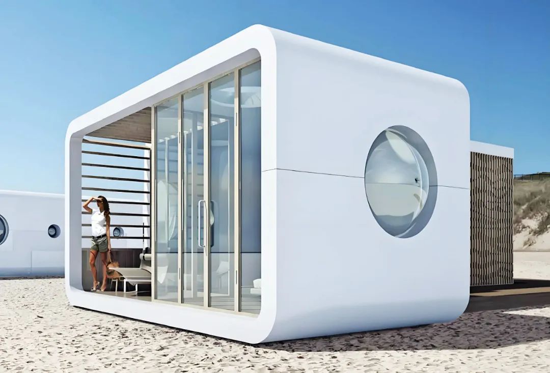 苹果舱是一种新型的住宿设施,广泛应用于移动民宿、网红民宿、景区、露营地和商业街的移动住宿办公等场所。因其外形酷似iPhone而得名。这种苹果舱不仅外观简洁大方,而且内部设施齐全,提供了舒适便利的居住环境。它的设计实现了面朝大海、春暖花开的理想生活场景,且有建造方便快捷,可移动,节省成本等特点。